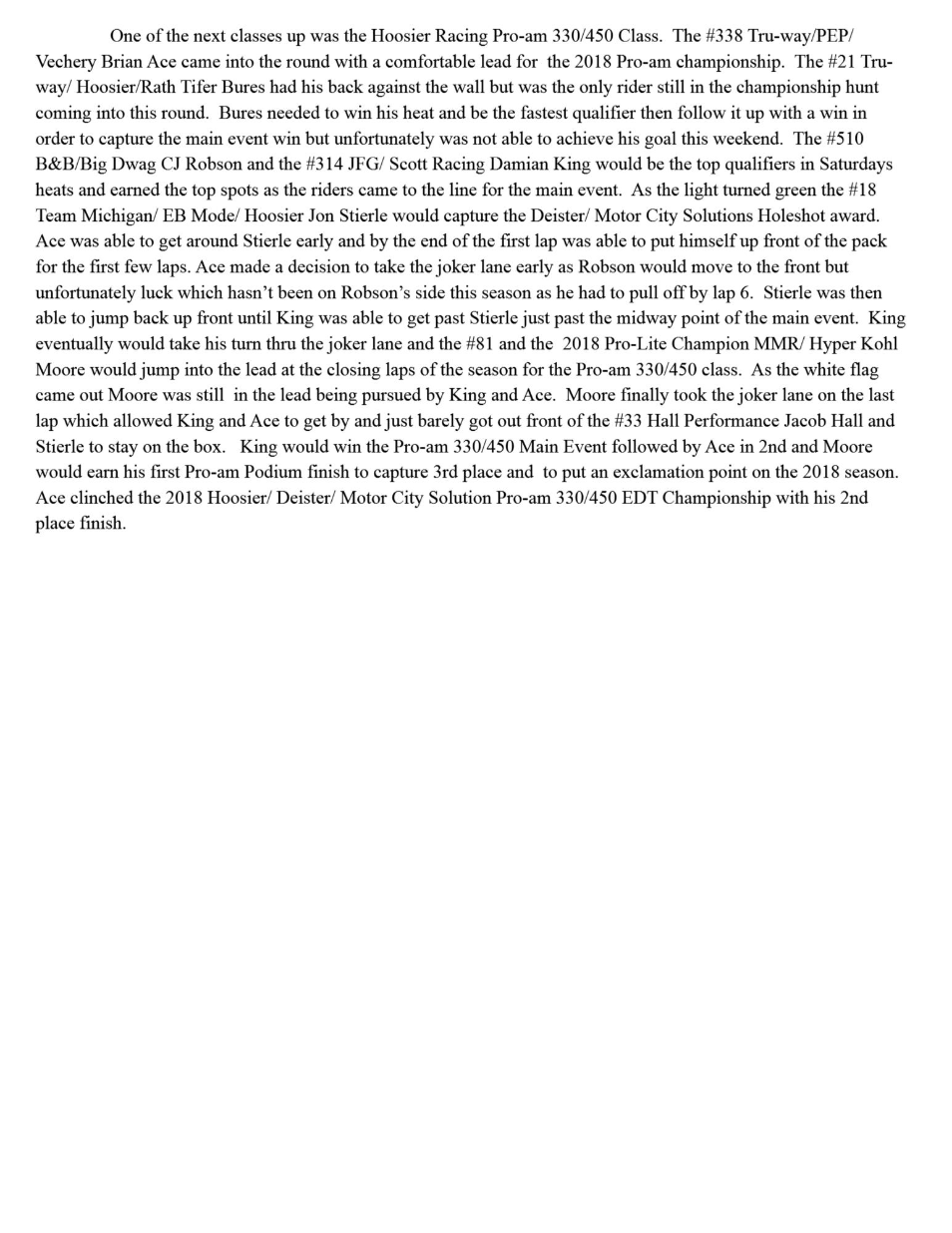 Hall also competed in Pro-am 330/450 and EDT Pro Class and also the 2 Stroke Exhibition Class. He is earning the officical name as "IronMan" of the EDT Series